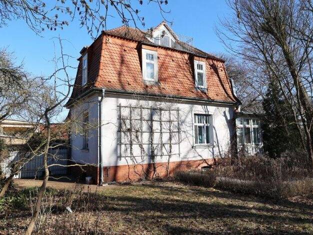 Beschreibung: Das Wohnhaus wurde um 1913 in massiver Mauerwerkskonstruktion als freistehende Fabrikantenvilla errichtet. Die opulente Villa wurde vor Kriegsbeginn vom Eigentümer der Hirsch-Kupfer-Wer...