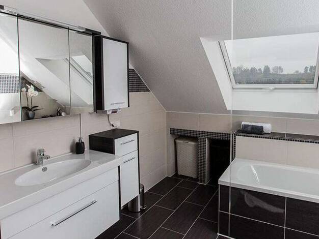 Das kleine Mehrfamilienhaus wurde 1997 in Holzständerbauweise mit einem Vollwärmeschutz und einem innenliegenden Schallschutz errichtet. Das Satteldach mit Betondachsteinen verfügt über Gauben, welch...