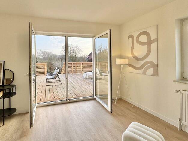 Das Erdgeschoss beeindruckt nicht nur durch seine großzügige Gestaltung, sondern auch durch die hochwertige Ausstattung. Die offene Küche ist nicht nur funktional, sondern auch ein Ort der Geselligke...