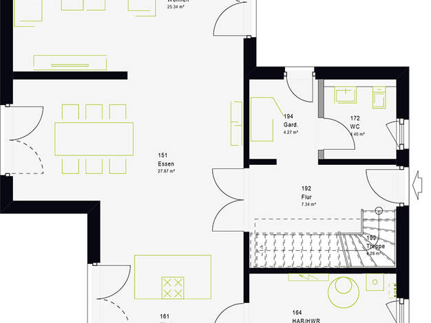 Das Mitwachshaus Flair 148 hat alles, was ein Haus zum Wohlfühlen benötigt: ein gemütliches Wohnzimmer mit hellem Essbereich und großen Fenstern, die viel Tageslicht hinein lassen. Die geräumige Küch...