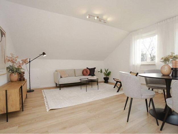 Die helle 2-Zimmer-Dachgeschosswohnung liegt im 3. OG links eines gepflegten Mehrfamilienhauses und bietet eine Wohnfläche von ca. 69,9 m². Der Grundriss ist klassisch und effizient: großzügiges Wohn...