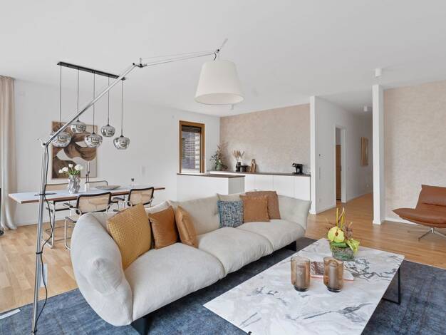Diese großzügige Wohnung im ersten Obergeschoss bietet mit ca. 115 m² ein Wohnkonzept, das Familien und anspruchsvollen Paaren gleichermaßen Raum und Komfort schenkt. Mittelpunkt der Wohnung ist der ...