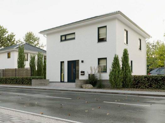 Objektbeschreibung Das „Aura 125“ überzeugt mit seiner cleveren Bauweise und flexiblen Gestaltungsmöglichkeiten. Dank seiner kompakten Außenmaße findet dieses Haus gerade auf kleinen und schmalen Gru...