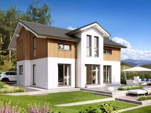 Wir planen dieses außergewöhnliche Haus mit Ihnen, nach Ihren Wünschen und Vorstellungen und bauen es mit unserer über 115jährigen Erfahrung. Dieses Fertighaus vereint traditionelle und moderne Eleme...