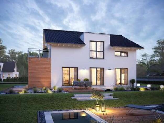 Hierbei handelt es sich um ein bereits realisiertes Beispielobjekt. Es ist kein Grundstück im Preis enthalten. Hier entsteht ein Einfamilienhaus. Das Haus hat eine Wohnfläche von ca. 145 qm und biete...