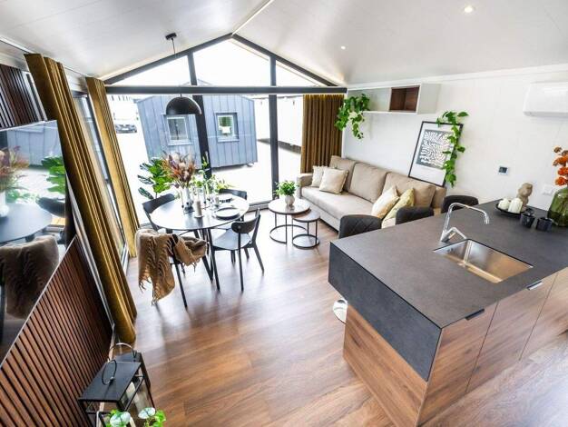 Der Bungalow 92 ist der Inbegriff von modernem Wohnen und einer gelungenen Verbindung von Funktionalität und Design. Das Wohn- und Esszimmer ist weit und lichtdurchflutet und bietet dank der großen T...