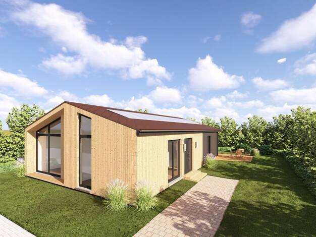 Attraktives Fertighaus als EffizienzHaus 55 mit 90 m² Wohnfläche. Dieses interessante Fertighaus in modularer Bauweise besteht aus zwei perfekt kombinierten Modulen, die ein großzügiges und lichtdurc...