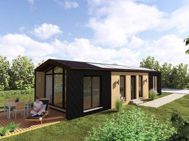 Attraktives Fertighaus als EffizienzHaus 55 - Stilvolles Wohnen im Raumwunder. Dieses Mikrohaus verbindet ein intelligentes Raumkonzept mit hohem Wohnkomfort auf kompakten 46 m² Wohnfläche. Es erwart...