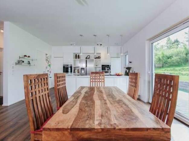 Die offenen Räume lassen sich ganz nach Wunsch und Bedarf der Baufamilien anpassen. Auf 136 m² sind der durchdacht und funktional geräumige Wohn-Ess-Bereich mit Gartenanbindung, Küche, Eltern- und Ki...