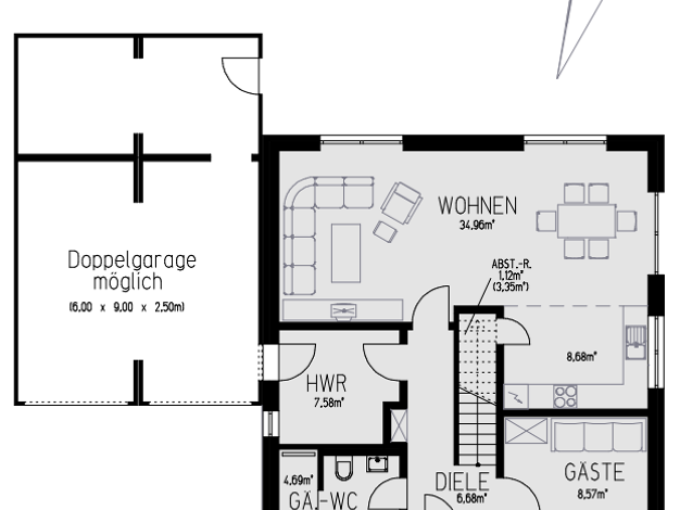 Die kubische Form ist der Klassiker im Stadthausdesign und prägt auch das Aussehen unseres Stadthaus Flair 124. Im Inneren setzt sich der urbane Stil fort: der großzügige Wohn- und Essbereich erstrec...