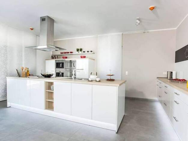 Die kubische Form ist der Klassiker im Stadthausdesign und prägt auch das Aussehen unseres Stadthaus Flair 124. Im Inneren setzt sich der urbane Stil fort: der großzügige Wohn- und Essbereich erstrec...
