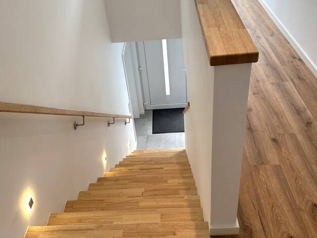 - Wohnfläche: ca. 121 m² auf zwei Etagen - Großes, lichtdurchflutetes Wohnzimmer mit viel Tageslicht - Offene Küche mit angrenzender Essecke - Drei Zimmer im Obergeschoss (flexibel nutzbar als Schlaf...
