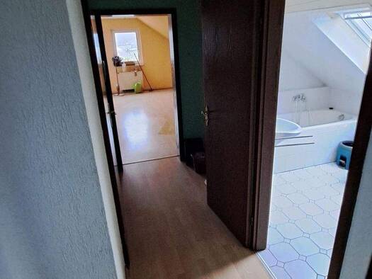 Das um 1730 errichtete Fachwerkhaus mit späterem Anbau steht lt. Denkmalschutzkarte nicht unter Denkmalschutz. Durch die Hanglage bedingt, befindet sich der EG-Bereich teilweise im Erdreich und das O...