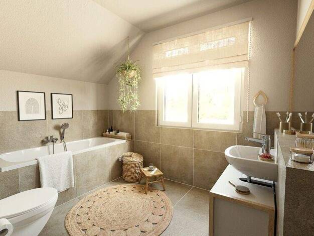 Das Mitwachshaus Flair 148 hat alles, was ein Haus zum Wohlfühlen benötigt: ein gemütliches Wohnzimmer mit hellem Essbereich und großen Fenstern, die viel Tageslicht hinein lassen. Die geräumige Küch...