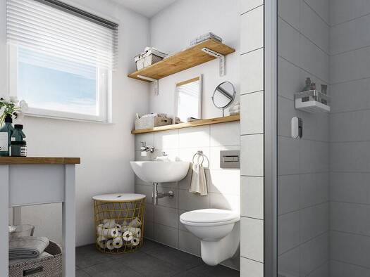 Das Flair 113 bietet alles, was ein Massivhaus gemütlich macht. Im Erdgeschoss betreten Sie ein geräumiges Wohn- und Esszimmer, eine Küche mit genügend Freiraum, ein Gäste-WC und einen Hauswirtschaft...