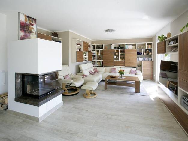 Die kubische Form ist der Klassiker im Stadthausdesign und prägt auch das Aussehen unseres Stadthaus Flair 124. Im Inneren setzt sich der urbane Stil fort: der großzügige Wohn- und Essbereich erstrec...
