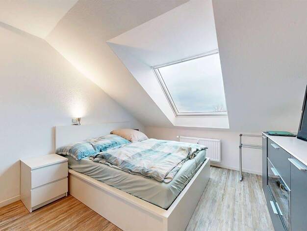 Diese modernisierte Dachgeschosswohnung überzeugt durch eine großzügige und zugleich gemütliche Raumaufteilung in einem gepflegten Mehrfamilienhaus auf einem ca. 2.729 m² großen Grundstück. Der gelun...