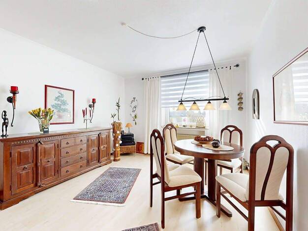 Diese helle und großzügige Wohnung im 1. Obergeschoss eines ruhigen und gepflegten Mehrfamilienhauses aus dem Baujahr 1955 bietet weit mehr als nur Wohnraum - sie schafft einen Ort zum Ankommen, Wohl...