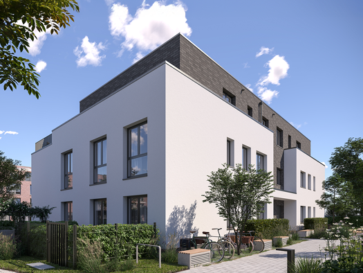 Das dreistöckige Gebäude in der Heinrich-Busold-Straße 79 entsteht in einer ruhigen Straßenschleife ohne Durchgangsverkehr. Hier am Rande des Neubaugebiets „Steinern Kreuzweg“ liegt es nahe der umlie...