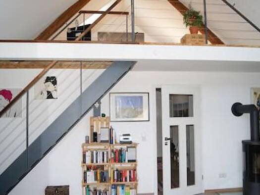 Die Wohnung wurde erst vor wenigen Jahren komplett saniert und umgebaut. In diesem Zusammenhang wurde der Spitzgiebel des Hauses in die Wohnung integriert, ein Kaminofen eingebaut, der Badezimmerbere...