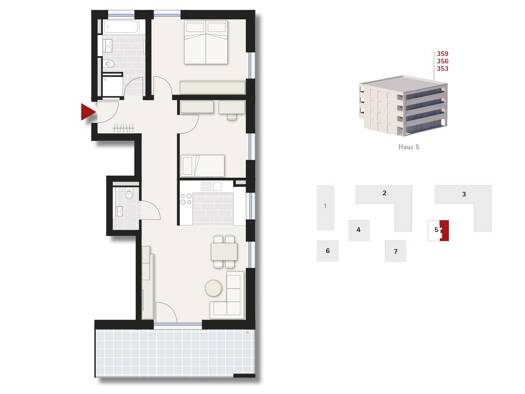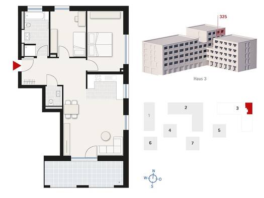 - Wohnflächen: Eigentumswohnungen haben typischerweise eine Größe von 65 - 95 m².