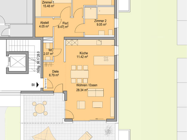 - Wohnflächen: Eigentumswohnungen haben typischerweise eine Größe von 73 - 117 m².