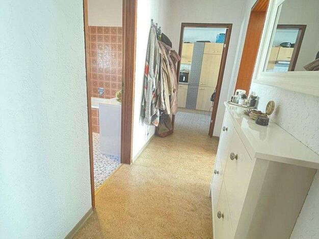 Diese herrliche Wohnung befindet sich im 1. Obergeschoss eines Hochhauses mit 88 Wohneinheiten, welches 1973 massiv erbaut wurde. Der große Eingangsbereich/Flur bietet genügend Platz für eine Gardero...