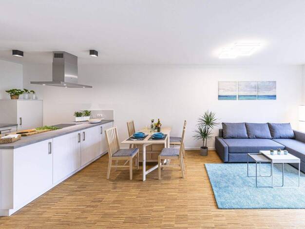 Eine hochwertige und moderne Ausstattung wie z.B. geflieste barrierefreie Duschen, ein Fahrstuhl bis in die Tiefgarage, elektrische Rollos oder Raffstore, Fußbodenheizung, und Lüftungsanlage sind der...