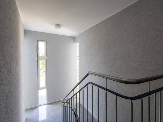 Die Wohnanlage wurde 1974 errichtet und besteht aus drei Mehrfamilienhäusern mit gemeinsamer Tiefgarage. Die angebotene Wohnung liegt im ersten Obergeschoss und hat eine Wohnfläche von etwa 102 Quadr...