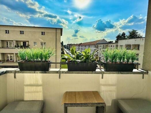Die Wohnanlage wurde 1930 erbaut, 2001 saniert und ist denkmalgeschützt. Die Wohnung befindet sich im 2. Obergeschoss und ist über das Treppenhaus zu erreichen. Eine Wohnfläche von ca. 85,79 m² verte...