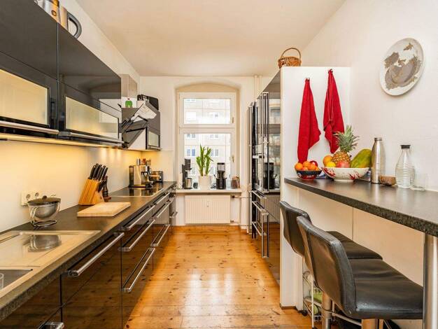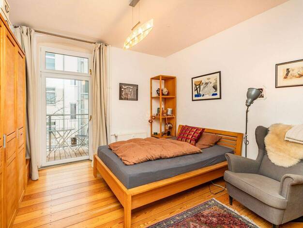 Diese Wohnung bietet eine sehr angenehme Altbaugroßzügigkeit. Charmant sind die breiten Holzdielen als klassischer Bodenbelag und luftig die über 3 Meter hohen Zimmerdecken. Für eine intensive Tagesh...