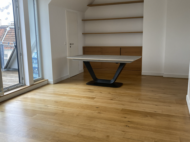 Ihr Tag beginnt mit einem Gefühl von Ruhe und Raum. Licht fällt durch bodentiefe, dreifach verglaste Fenster auf warmes Echtholzparkett, die Fußbodenheizung sorgt für behagliche Wärme. Sie treten hin...