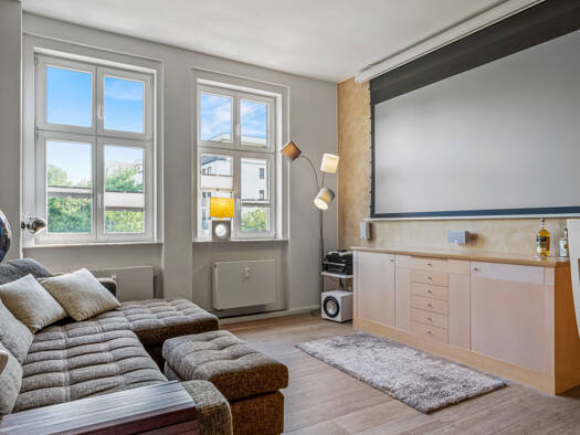 Die Fassade der Marchlewskistraße 77 fügt sich unaufgeregt in das Friedrichshainer Straßenbild ein. Wer hier vorbeigeht, ahnt kaum, was sich dahinter verbirgt: ein außergewöhnliches Zuhause mit großz...