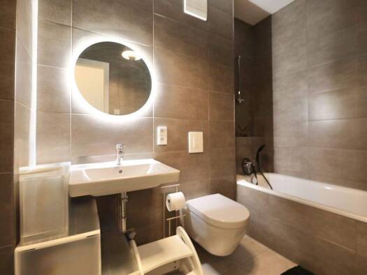 Das Wohn- und Geschäftshaus wurde 2018 erbaut und beinhaltete 114 Wohneinheiten sowie drei Gewerbeeinheiten. Dezente Kontraste aus Naturstein und Keramikplatten schmücken den 2- geschossigen Sockel d...