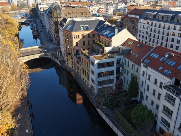 Diese außergewöhnliche Dachgeschosswohnung erstreckt sich über zwei Ebenen und befindet sich in einem denkmalgeschützten Gebäude direkt am idyllischen Engelbecken im Herzen von Berlin-Mitte. Mit eine...