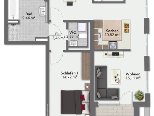 1,5 Zimmer