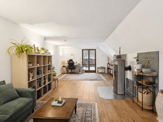 Beim Betreten dieser charmanten Maisonette-Wohnung erwartet Sie ein einladender Eingangsbereich, der nahtlos in den großzügigen Wohnbereich übergeht. Der offene Wohnraum bietet viel Platz für individ...