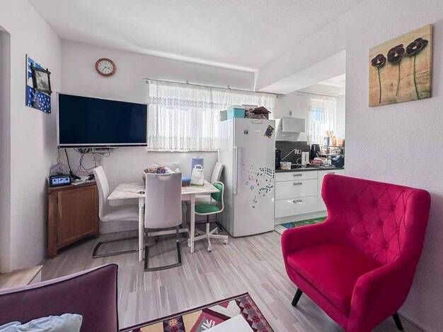 Diese gepflegte 3-Zimmer-Wohnung befindet sich im 1. Obergeschoss eines Mehrfamilienhauses aus dem Jahr 1961 mit insgesamt acht Wohneinheiten. Die Wohnung bietet einen praktischen Grundriss, ein ange...