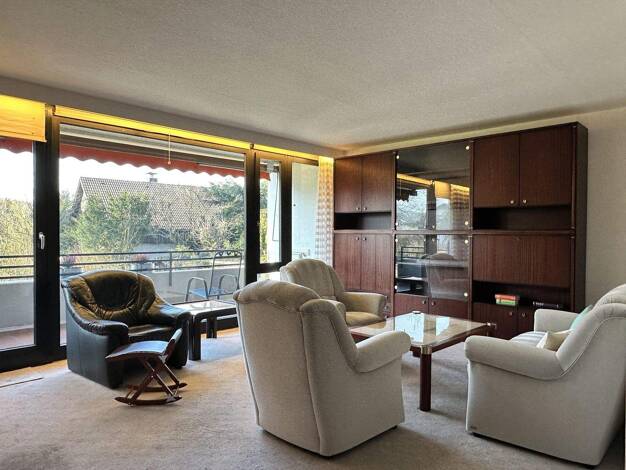 Diese geräumige Wohnung, bestehend aus einem stilvollen Eingangsbereich, Wohn-, Kinder-, Arbeits- und Schlafzimmer, Bad sowie Balkon, ist hell und freundlich, bietet einen unverbauten Fernblick (der ...