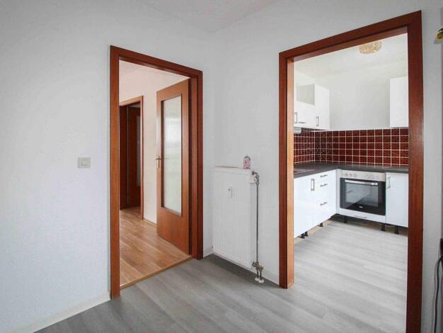 Die gepflegte Eigentumswohnung überzeugt durch einen klaren Grundriss, bei dem alle Räume vom Flur aus erreichbar sind. Das helle Wohn-/Esszimmer mit offen gestalteter Küche und Einbauküche bildet de...
