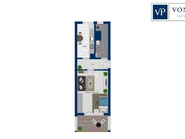 Die im Souterrain gelegene Zweiraumwohnung bietet Ihnen eine Küche, ein helles Wohnzimmer mit Zugang zur Terrasse und ins Grüne, ein Schlafzimmer, ein Tageslichtwannenbad, einen Abstellraum und einen...