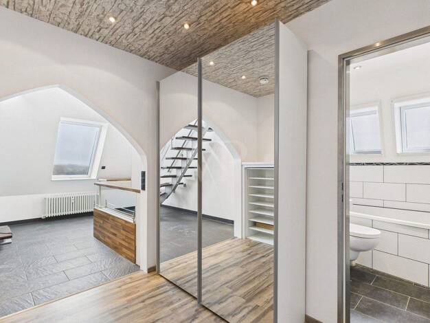 Diese Wohnung bietet Ihnen eine große Dachterrasse und überzeugt durch viel Wohnkomfort. Beim Betreten der Wohnung gelangen Sie in einen einladenden Eingangsbereich. Rechts finden Sie das großzügige ...