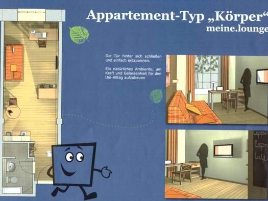 Hier finden Studenten, Universitätsmitarbeiter oder auch Berufsanfänger die ideale Wohnadresse. Imposante Anlage, Loftcharkater und eine zeitlose Ausstattung versprechen ein angenehmes Wohnen. Die ku...