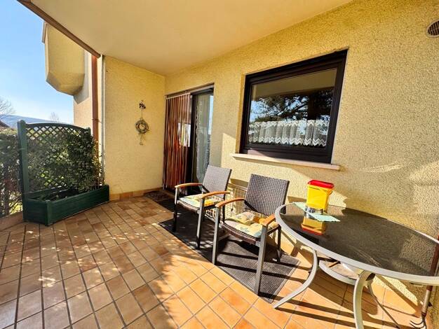 BERK Immobilien - Diese außergewöhnliche Erdgeschosswohnung in Laudenbach vereint das Wohngefühl eines Hauses mit den Vorteilen einer Wohnung - und bietet dabei ein Maß an Privatsphäre und Außenfläch...