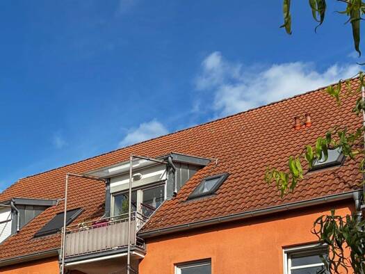 56 m² Dachgeschosswohnung in einem Mehrfamilienhaus. Sie umfasst einen kleinen Flur, Abstellraum, ein Dusch-Wannenbad, einen Wohnraum mit Küche und Balkon sowie ein Schlafzimmer. Im Kaufpreis enthalt...