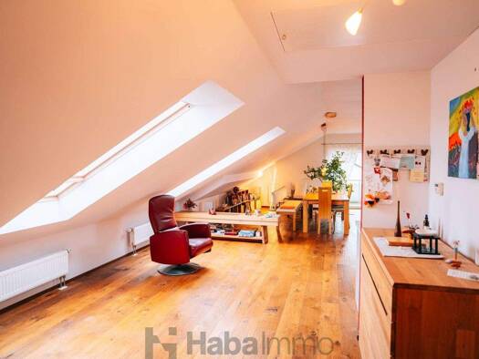 Diese charmante Dachgeschosswohnung wurde 2015 komplett neu ausgebaut und präsentiert sich in einem neuwertigen Zustand. Mit einer Wohnfläche von ca. 102 m² bietet diese 3,5-Zimmer-Wohnung ausreichen...