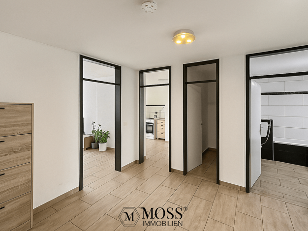 Beim Betreten der Wohnung gelangen Sie in einen großzügigen Flur, der viel Platz bietet – ideal für Einbauschränke und Stauraum, sodass Sie alles ordentlich verstauen können. Auf der unteren Ebene be...