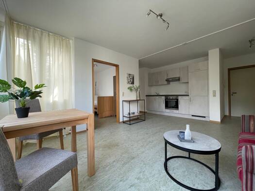 Diese gepflegte 2-Zimmer-Wohnung mit Terrasse und Garten überzeugt durch einen durchdachten Grundriss und eine moderne Ausstattung. Der offene Wohn- und Essbereich mit integrierter Küche bietet direk...