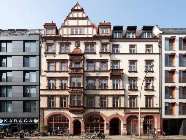 (English version see below) Gegenüber des Tacheles Geländes entstand hier in Jahr 2012 ein vollkommen neu interpretierter und außergewöhnlicher Neubau mit luxuriös repräsentativen und sehr privaten L...