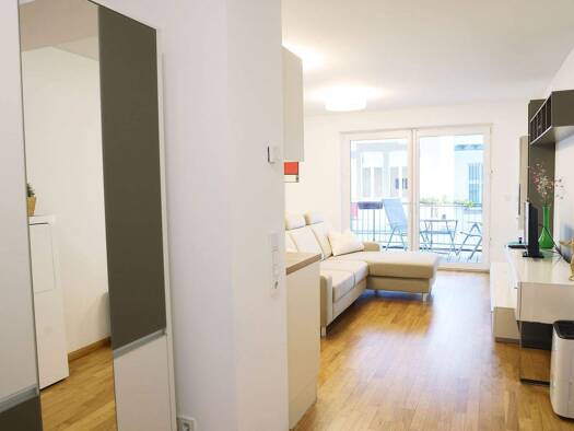 Die kleine 2-Zimmer-Wohnung mit integrierter Wohnküche befindet sich in einem 2020 errichteten Gebäudekomplex aus 6 Gebäuden mit einer großen Tiefgarage. Man betritt die im Erdgeschoss gelegene Einhe...